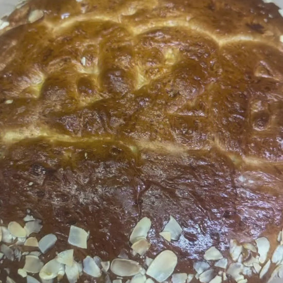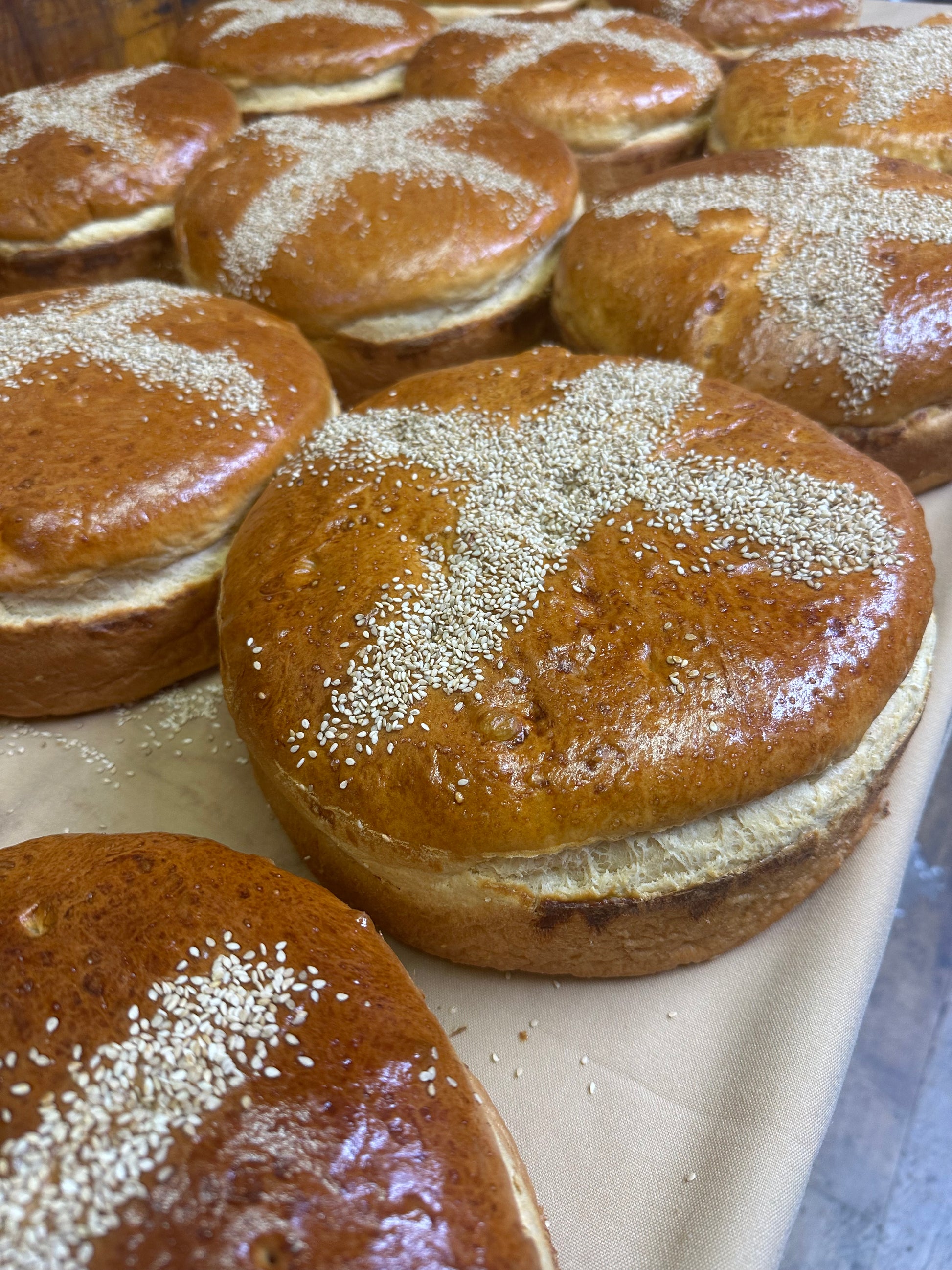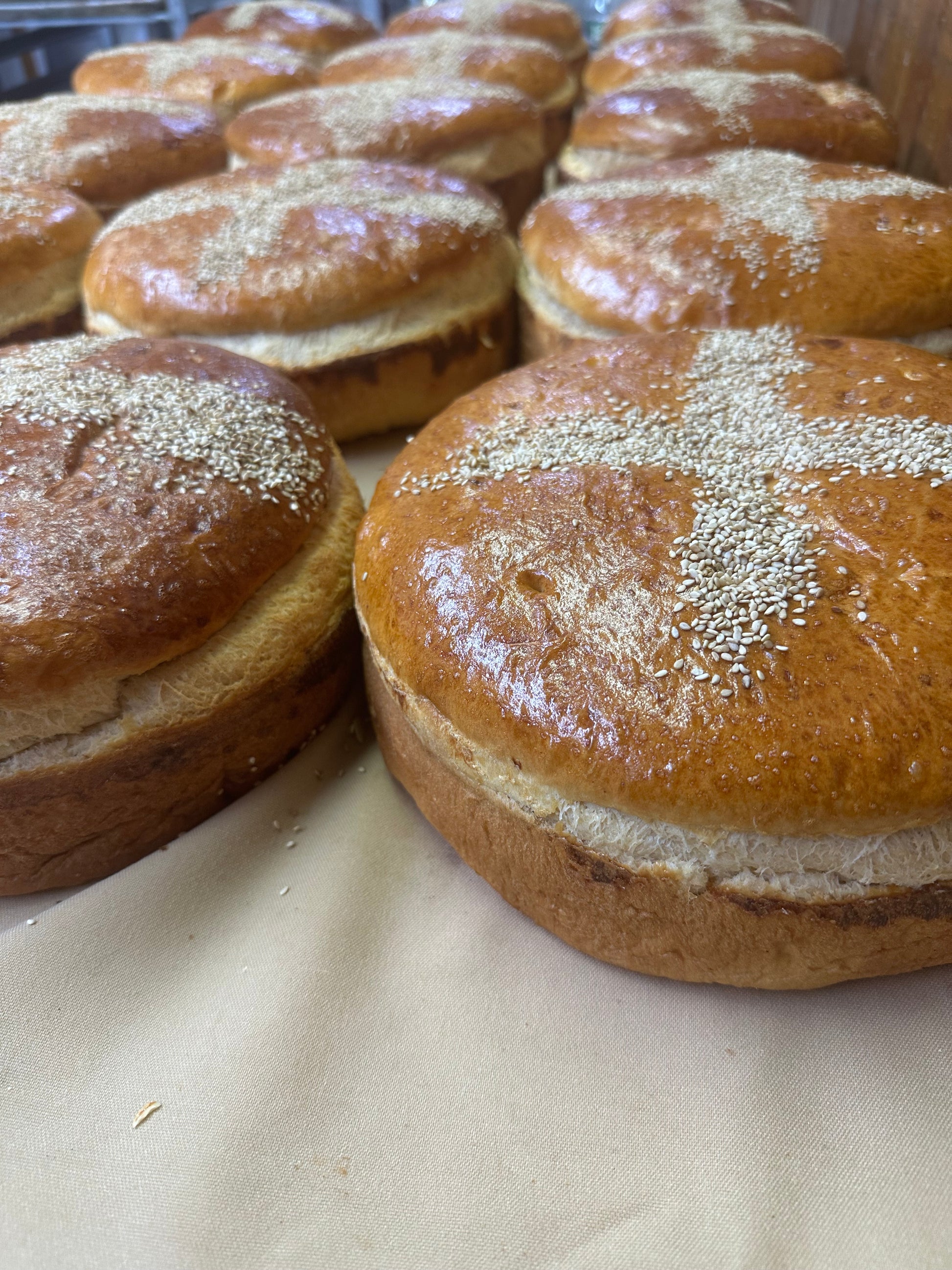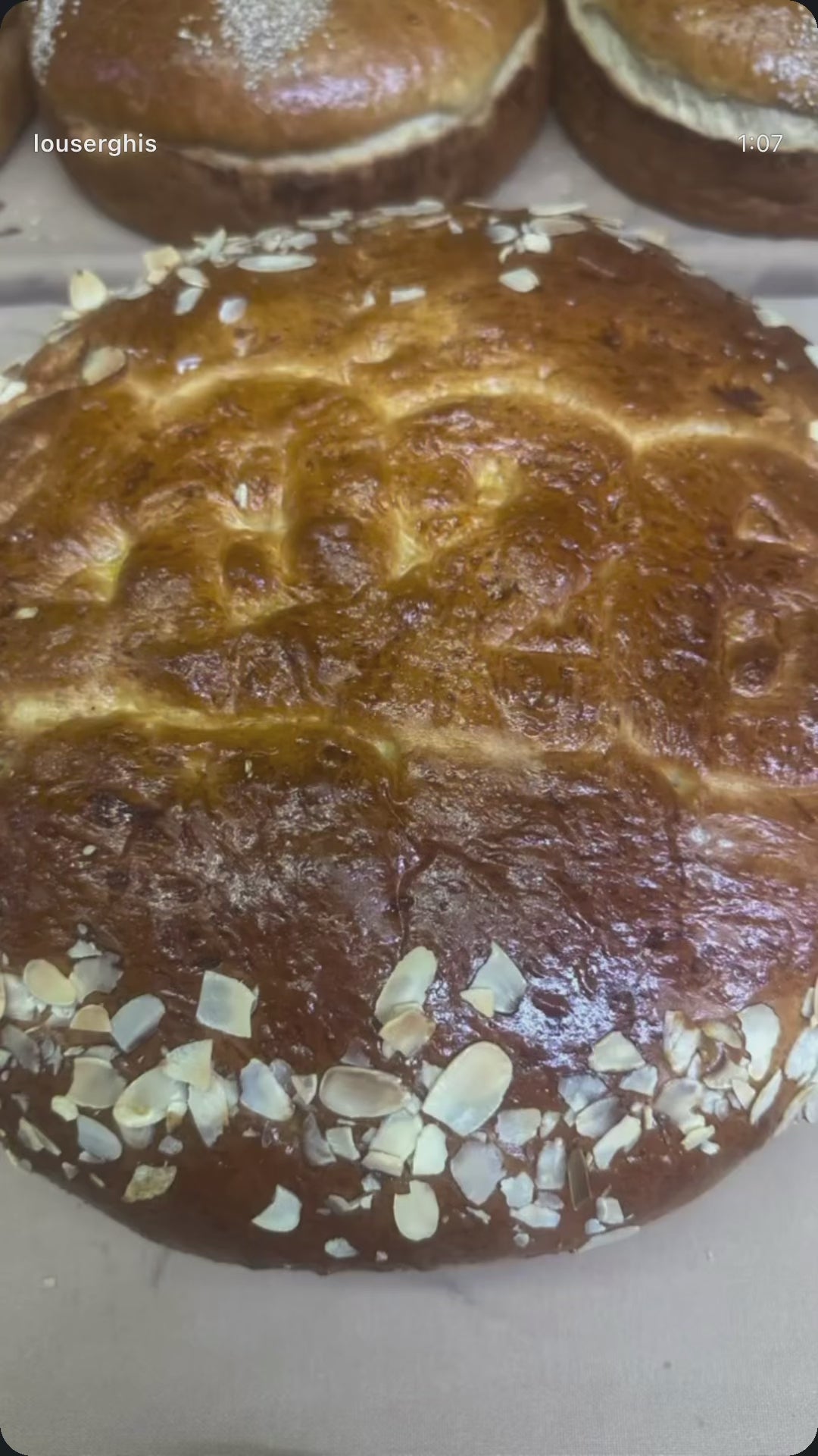 2 pounds each. Our tsoureki bread with the cross on top with sesame seeds for religious ceremonies